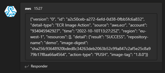 Push a new image into an ECR repository, and take a look at your Teams Channel.